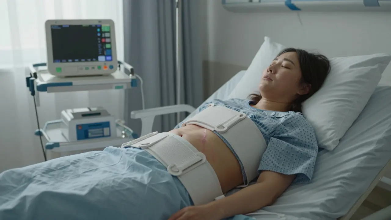 Hned po operaci je břicho pevně obvázané. To slouží k tomu, aby se snížila otok a zamezilo se krvácení. Zároveň to vytváří tlak, který působí jako přírodní bolestivý stimul - ne vždy příjemný. Někteří pacienti popisují pocity jako „těžké břicho“, „napnuté kůži“ nebo „citlivost jako po silném svalu“.